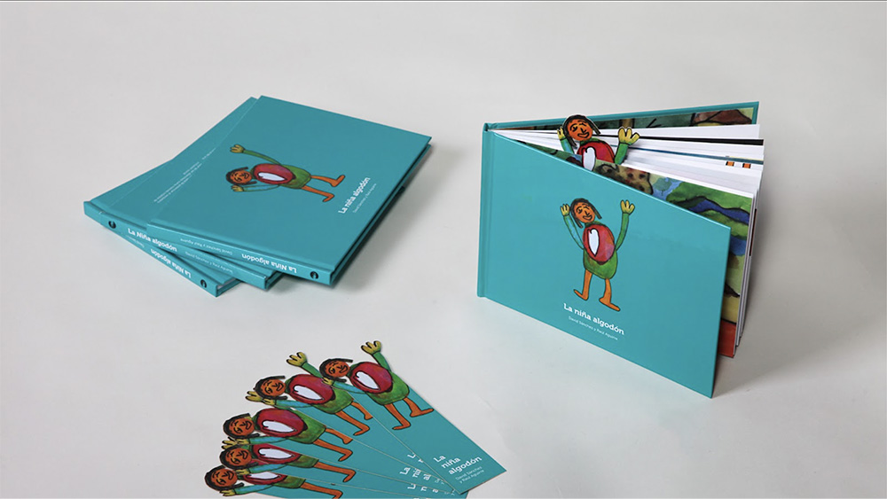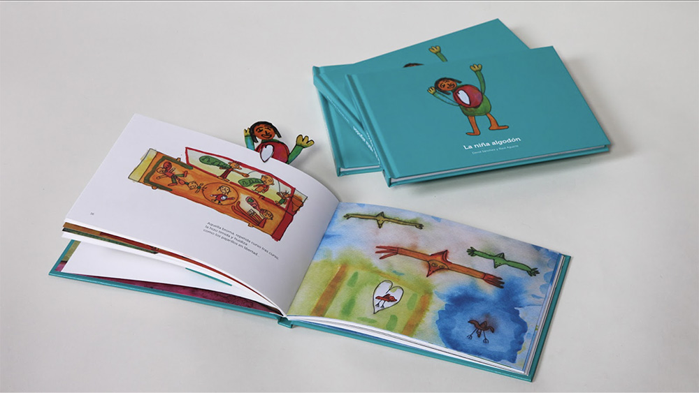 El imperativo de accesibilidad de este proyecto nos llevó a hacer una versión de “La niña Algodón” en lectura fácil, y otra en pictogramas, para poder llegar a todo el mundo. Para ello desarrollamos un ecosistema completo de pictogramas con los que poder entender
